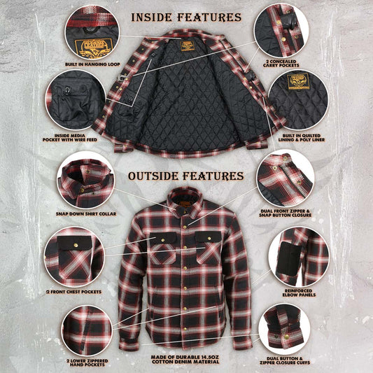 Milwaukee Leather MPM1632 Men's Plaid Flannel Biker Shirt with CE Approved Armor - Reinforced w/ Aramid Fiber