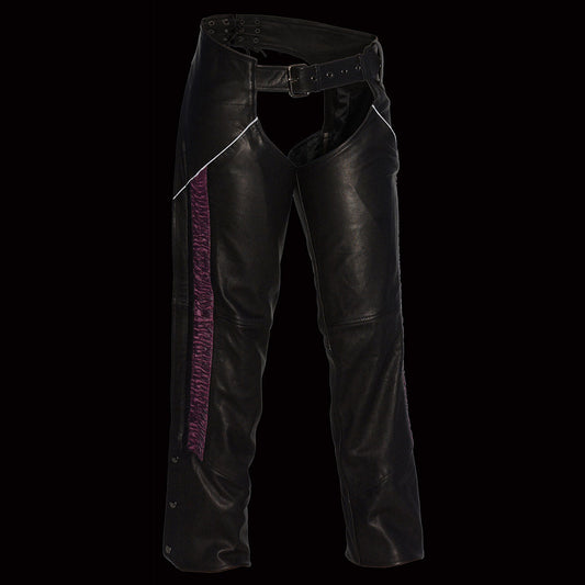 Milwaukee Leather Women's Black and Fuchsia Leather Hip Set Chaps w/ Crinkled Leg Striping MLL6500