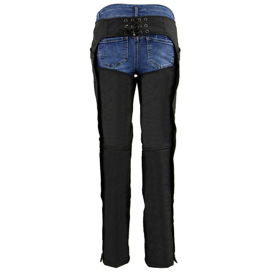 Milwaukee Leather SH1199 Women's Black Leather Short Chaps with Conchos