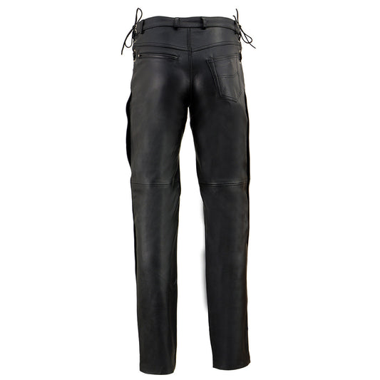 Milwaukee Leather SH1987 Men's Black Leather Deep Pocket Motorcycle Over Pants with Side Laces