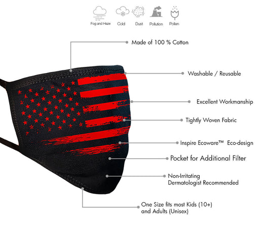 Milwaukee Leather FMD1017 'Black and Red US Flag' 100 % Cotton Protective Face Mask with Optional Filter Pocket