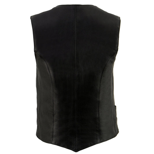Milwaukee Leather ML1253 Women's Black Premium Leather Motorcycle Rider Vest w/ Snap Button Closure