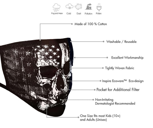 Milwaukee Leather FMD1010 Men's 'Skull with Flag' 100 % Cotton Protective Face Mask with Optional Filter Pocket
