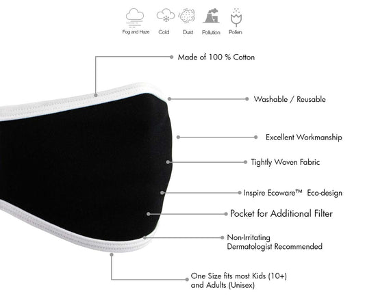 Milwaukee Leather (Multi-Pack) MP7924FM 'Solid Black' 100 % Cotton Protective Face Mask with Optional Filter Pocket
