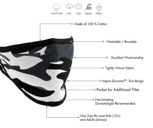 Milwaukee Leather (Multi-Pack) MP7924FM 'Camouflage Grey' 100 % Cotton Protective Face Mask with Optional Filter Pocket