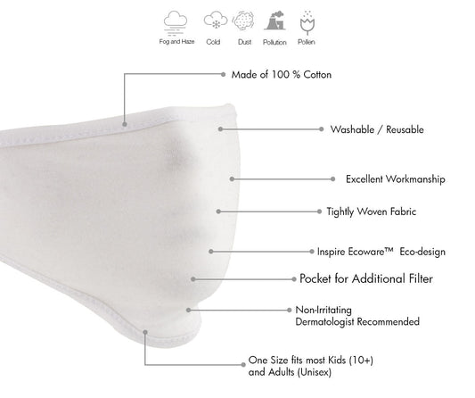 Milwaukee Leather (Multi-Pack) MP7924FM 'Solid White' 100 % Cotton Protective Face Mask with Optional Filter Pocket