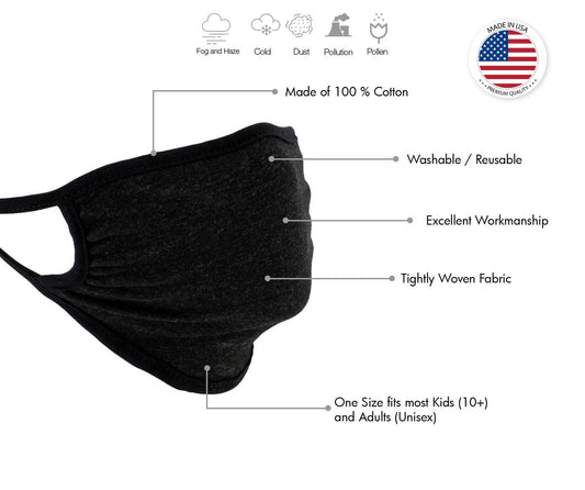 Milwaukee Leather MP7924FM 'Solid Black' 100 % Cotton Protective Face Mask with Optional Filter Pocket