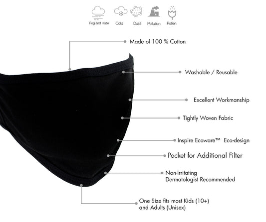 Milwaukee Leather MP7925FM Kids 'Solid Black' 100 % Cotton Protective Face Mask with Optional Filter Pocket