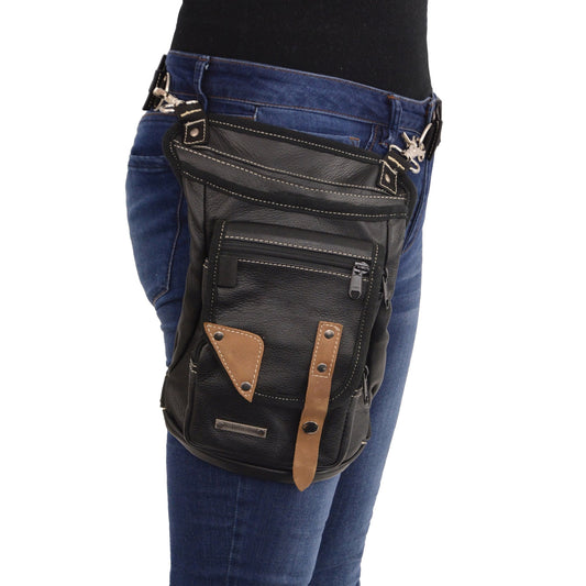 Milwaukee Leather MP8897 Black and Tan Conceal and Carry Leather Thigh Bag with Waist Belt