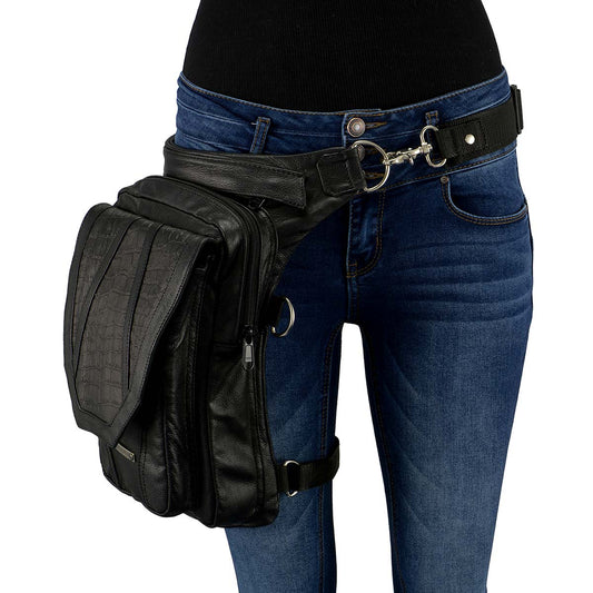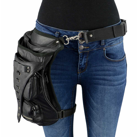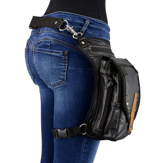 Milwaukee Leather MP8880 Black Conceal and Carry Leather Thigh Bag with Waist Belt