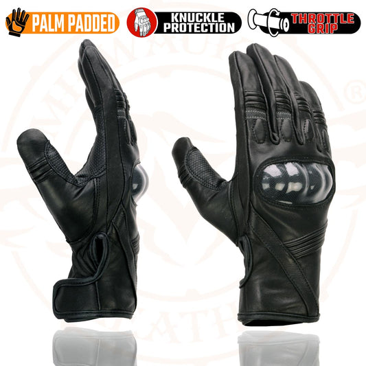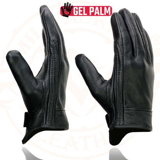 Milwaukee Leather MG7510 Men's Black Leather Gel Padded Palm Short Wrist Motorcycle Hand Gloves W/ ‘Full Panel Cover’