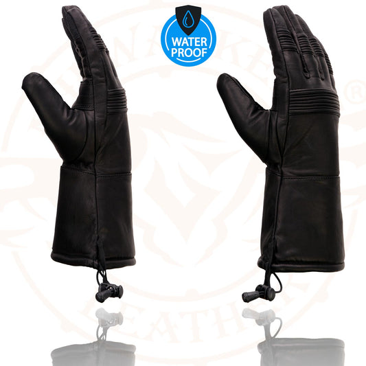 Milwaukee Leather SH294 Men's Black Leather Waterproof Gauntlet Gloves with Stretch Knuckles