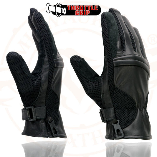 Milwaukee Leather SH296 Men's Black Leather Mesh Racing Motorcycle Hand Gloves W/ Padded Knuckle