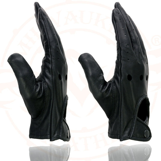 Milwaukee Leather SH810 Men's Black Perforated Leather Motorcycle Riders Gloves with Knuckle Protection