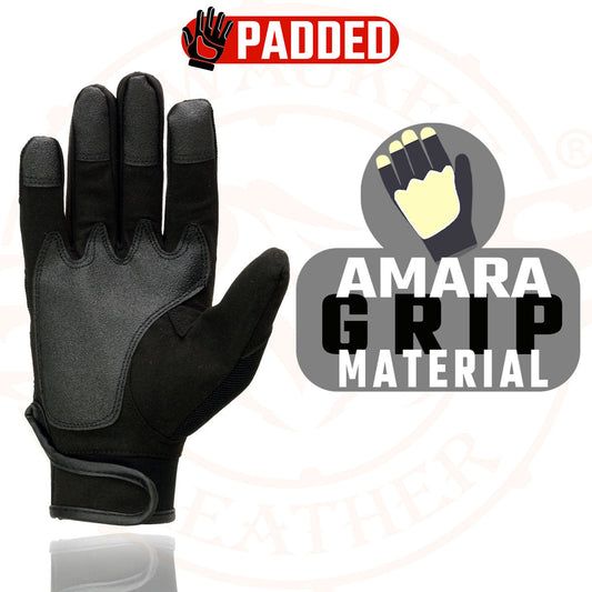 Milwaukee Leather SH761 Men's Black Textile Padded Knuckle Mechanics Gloves with Amara Palm