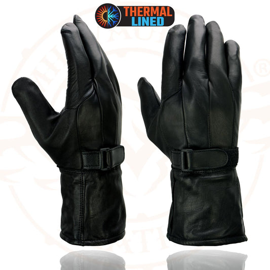 Milwaukee Leather SH734 Men's Black Thermal Lined Leather Motorcycle Gloves w/ Cinch Wrist Closure
