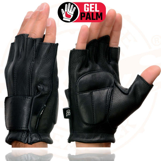 Milwaukee Leather SH355 Men's Motorcycle Black Leather Fingerless Gloves with Gel Palm