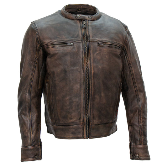 Hot Leathers JKM1019 Men's Distressed Brown Leather Motorcycle Biker Jacket with Gun Pockets