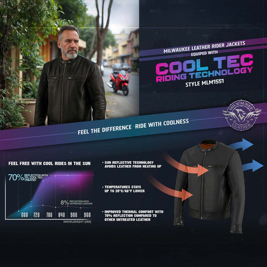Milwaukee Leather MLM1551 Men's Black Lightweight Premium Leather Motorcycle Jacket w/ Cool-Tec Leather Treatement