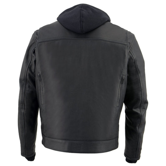 Milwaukee Leather MLM1537 Men's Black Leather ‘Utility Pocket’ Vented Jacket with Removable Hoodie