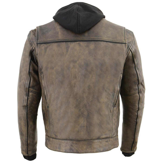 Milwaukee Leather MLM1538 Men's Distressed Brown Leather ‘Utility Pocket’ Vented Jacket with Removable Hoodie