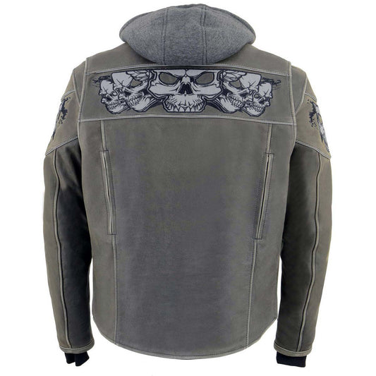 Milwaukee Leather MLM1539 Men's Distressed Grey Leather ‘Utility Pocket’ Vented Jacket with Removable Hoodie