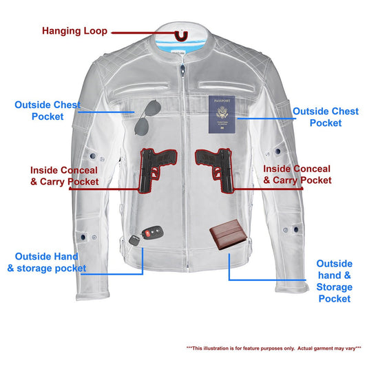 Milwaukee Leather MLM1545 Men's Quilted Pattern Triple Vent Black Leather Scooter Jacket