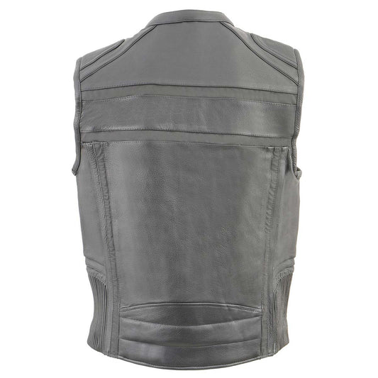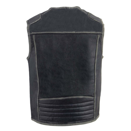 Milwaukee Leather MLM3536 Men's Distressed Grey Leather Collarless Motorcycle Rider Vest