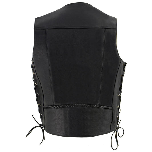 Milwaukee Leather MLM3520 Men's Black Leather Vest - Classic V-Neck Straight Bottom Side Lace Motorcycle Rider Vest