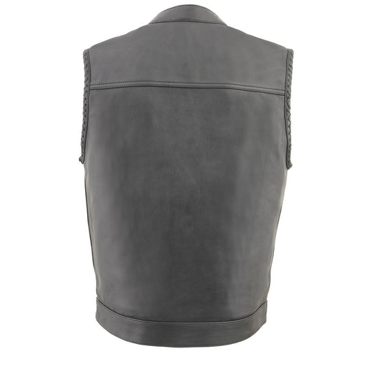 Milwaukee Leather MLM3513 Men's Premium Leather Club-Style Motorcycle Vest w/ Snaps and Zipper Closure