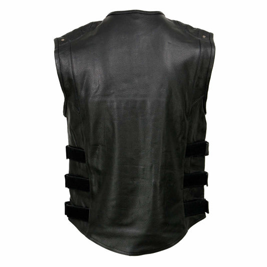 Milwaukee Leather MLM3530 Men's Black Swat Tactical Style Leather Vest Club Patch Accessible Single Panel Back Vest