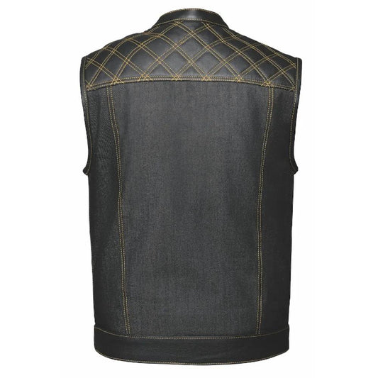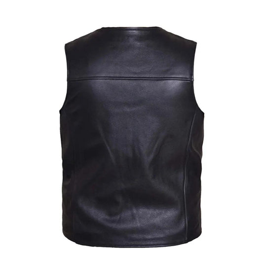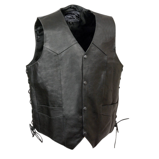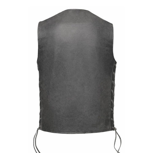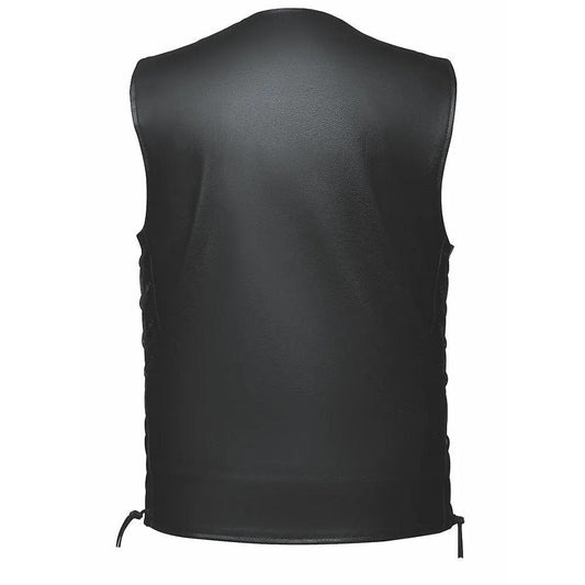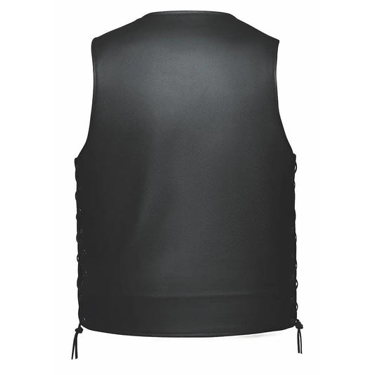 Milwaukee Leather MLM3511 Men's Black Collarless Snap/Zipper Club Style Motorcycle Leather Vest