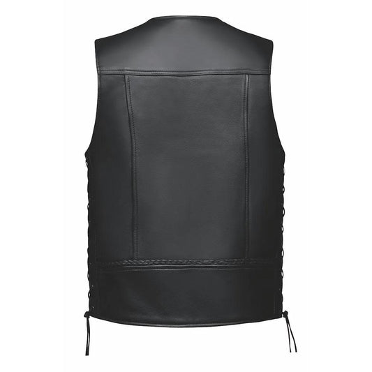Event Leather ELM3900 Men's Motorcycle Riders Black Leather Vest with Embossed Native American Head