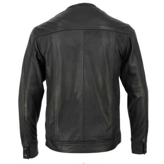 Milwaukee Leather MLM1607 Men's Collarless Black Premium Goat Skin Leather Casual Biker Shirt w/ Dual Closure