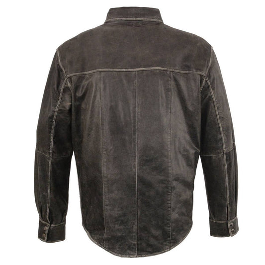 Milwaukee Leather MLM1605 Men's 'Button Down' Distressed Grey Lightweight Casual Biker Leather Shirt