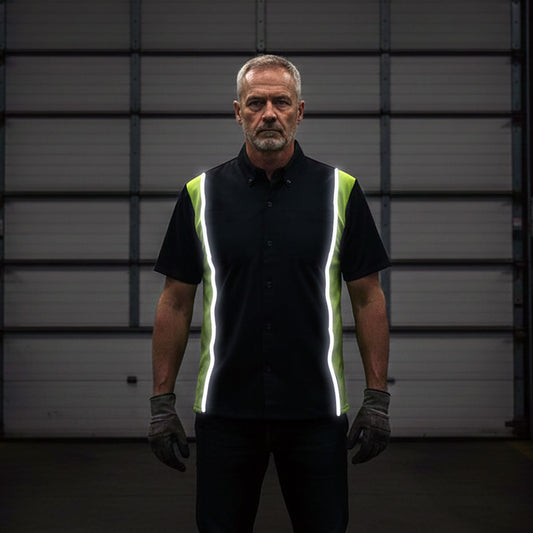 Milwaukee Motorcycle Clothing Co. Men’s Blk/Green Mechanic Work Shirt – w / Reflective Strip, Rider‑Built MDM11604