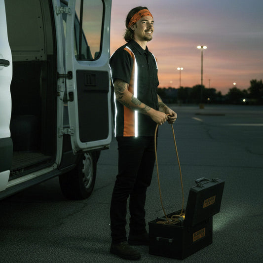 Milwaukee Motorcycle Clothing Co. Men’s Blk/Orange Mechanic Work Shirt – w / Reflective Strip, Rider‑Built MDM11610