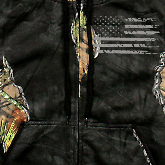 Mossy Oak and Hot Leathers GMZ4470 Mens Limited Edition Mashup Flag Eclipse Camo Zip Up Hoodie Sweatshirt