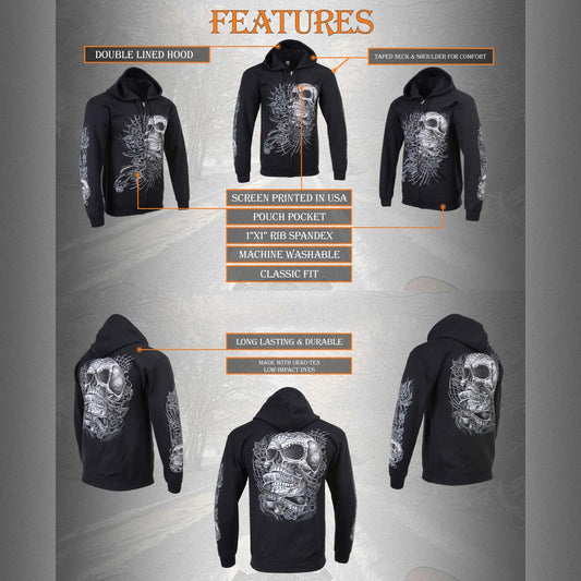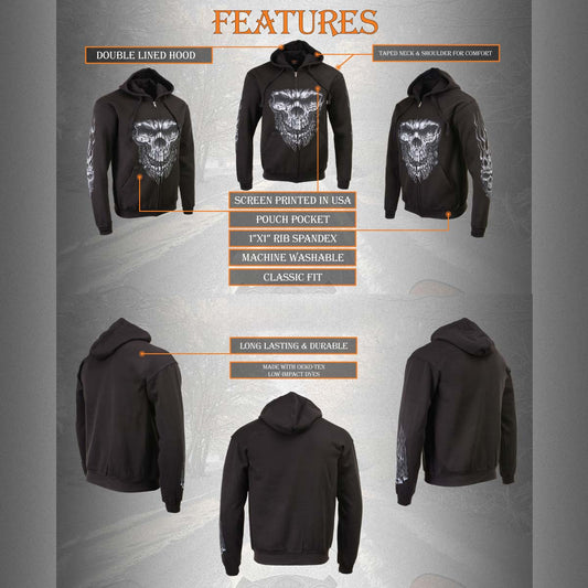 Milwaukee Leather MPMH118002 Men’s ‘Shredder Skull’ Black Hoodie with Zipper Closure