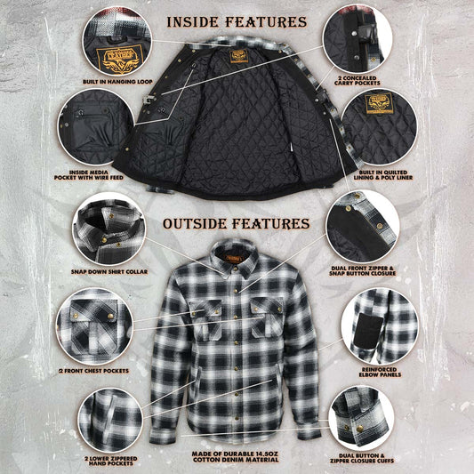 Milwaukee Leather MPM1626 Men's Plaid Flannel Biker Shirt with CE Approved Armor - Reinforced w/ Aramid Fiber