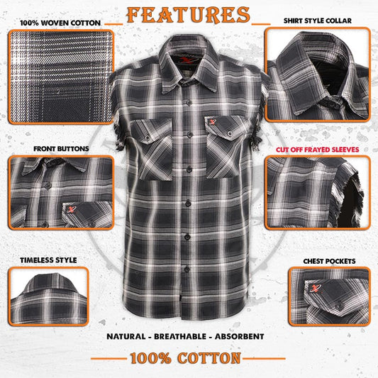 Milwaukee Leather MNG11694 Men’s Classic Black and White Button-Down Flannel Cut Off Frayed Sleeveless Casual Shirt