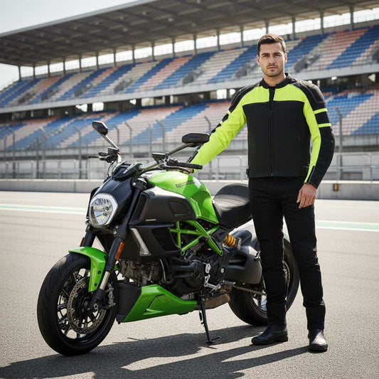Milwaukee Leather MPM1791 Men's Black and Neon Green Armored Textile Motorcycle Riding Jacket