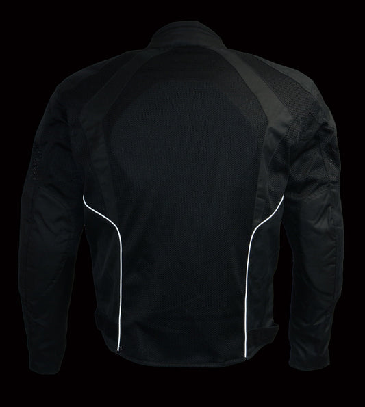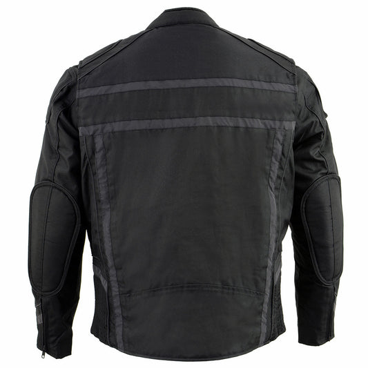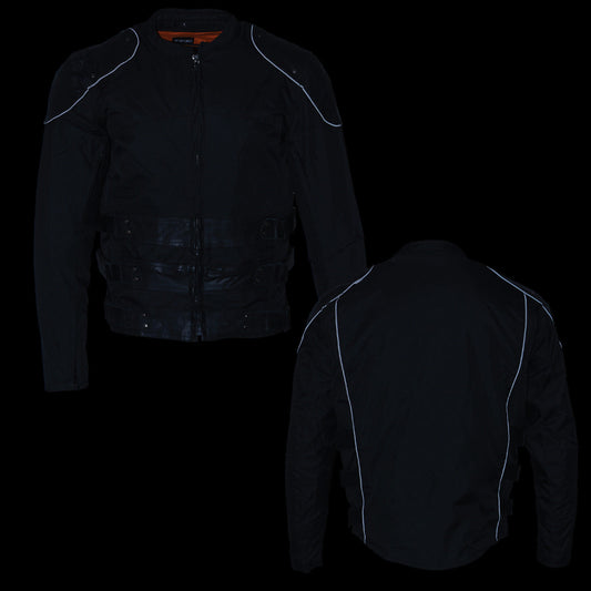 Milwaukee Leather MPM1740 Men's Black Vented Textile Jacket with Reflective Stripes
