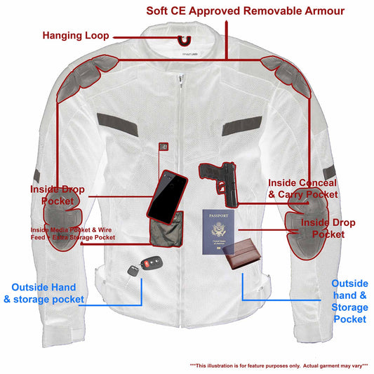 Milwaukee Leather MPM1793 Black Armored Mesh Motorcycle Jacket for Men - All Season Biker Jacket