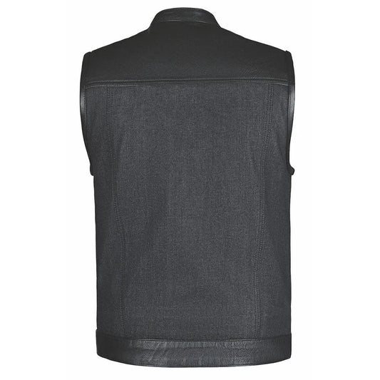 Hot Leathers VSM6101 Men's Motorcycle Club style Carry Conceal Black Denim and Leather Biker Vest