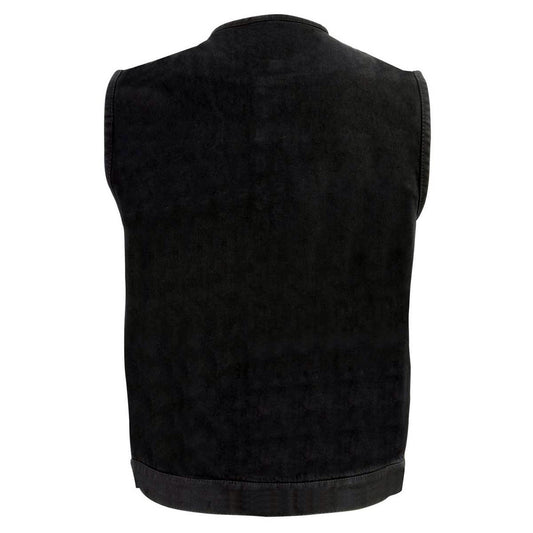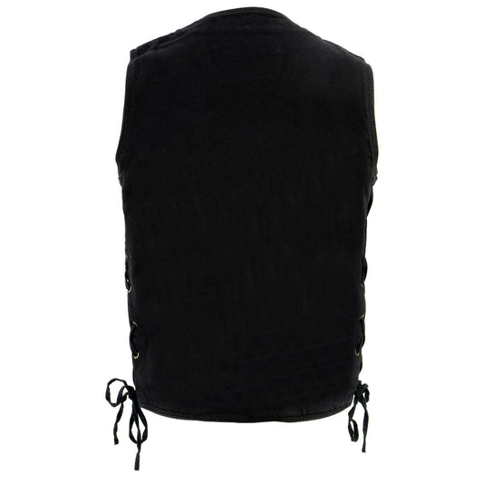 Milwaukee Leather DM1990 Men's Black 10 Pocket Side Lace Denim Vest
