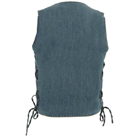 Milwaukee Leather DM1989 Men's Blue Denim '10 Pocket' Motorcycle Bikers Rider Vest with Side Laces
