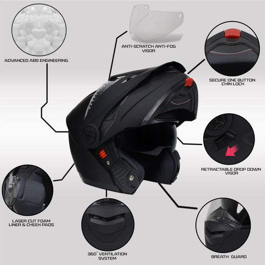 Milwaukee Helmets MPH9820DOT Flat Black Ominous Dual Sport Advanced Motorcycle Modular Helmet Biker