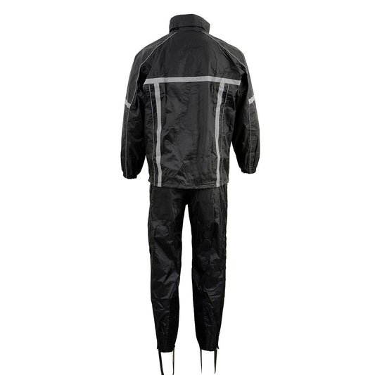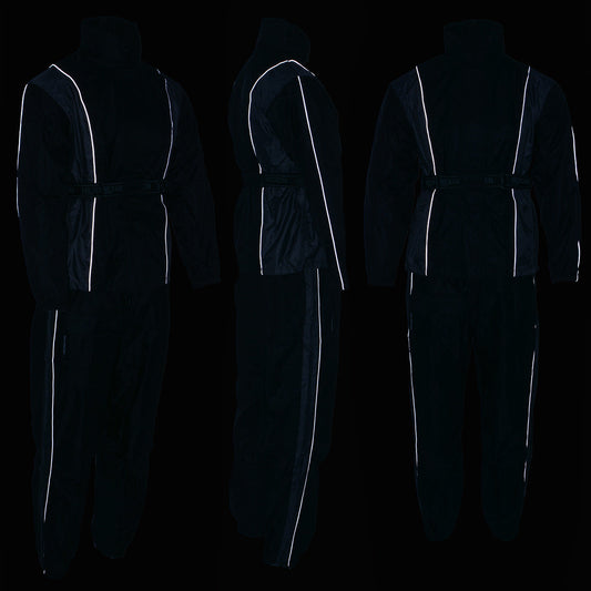 Milwaukee Leather MPM9510 Men's Black Water-Resistant Motorcycle Rain Suit with Hi Vis Reflective Tape