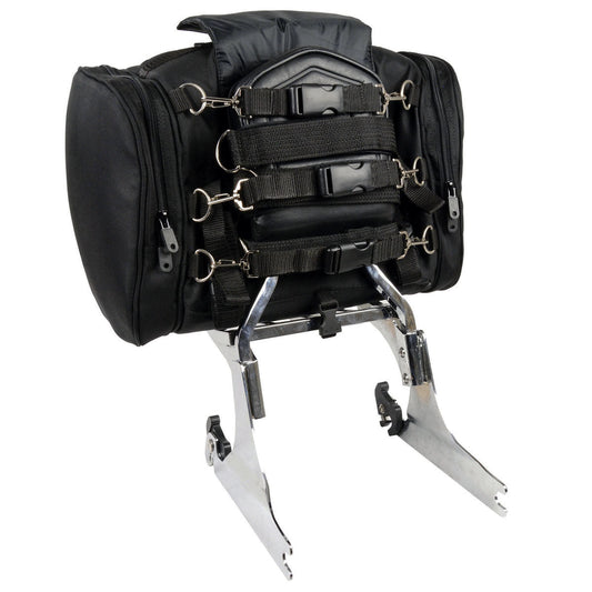 Milwaukee Performance SH684 Medium Black Textile Motorcycle Sissy Bar Bag with Reflective Piping